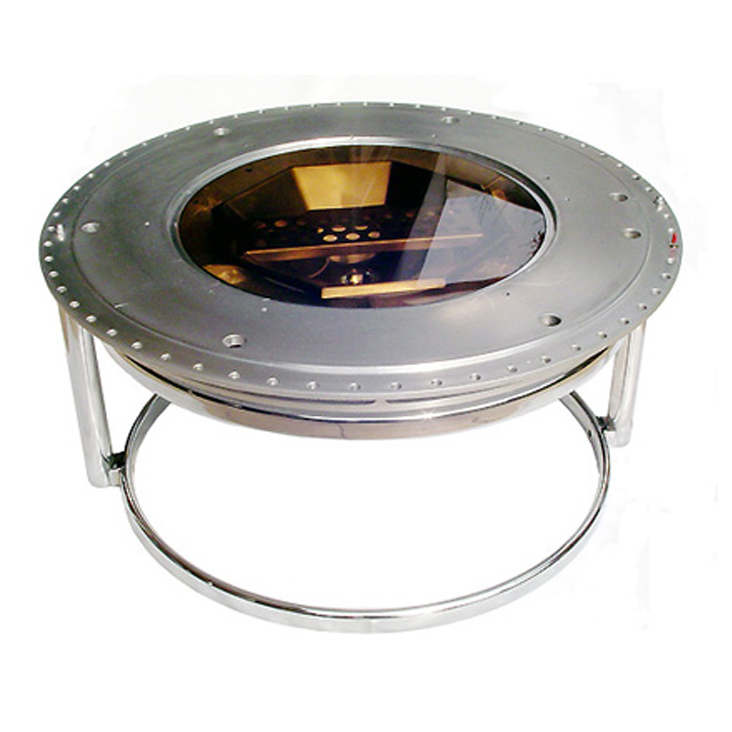 Mit seinem futuristisch eleganten Look eignet sich dieser beleuchtete Designertisch perfekt als Beistelltisch zu einem modernen Ledersofa. Durch die braune Glasscheibe entfaltet die Halogenbeleuchtung ihr warmes und gedämpftes Licht, beim Umschalten des winzigen Kippschalter am Rand der massiven Aluminiumscheibe.