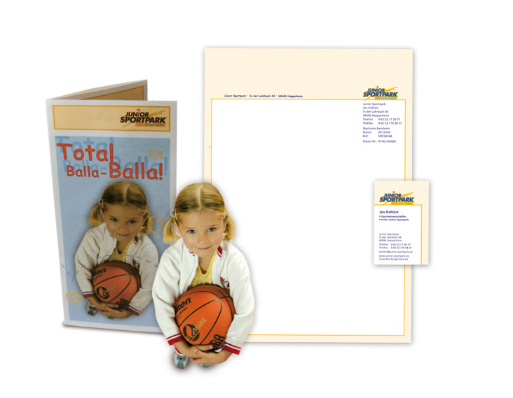 Grafische Gestaltung für den JUNIOR SPORTPARK, einen Kindersport-Veranstalter: Fotografie, Flyer und Geschäftsausstattung