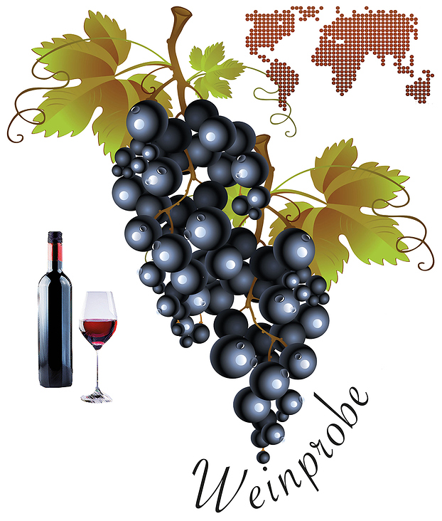 Das Logo soll auch mitteilen das es um eine Weinprobe handelt wo internationale Produkte probiert werden.