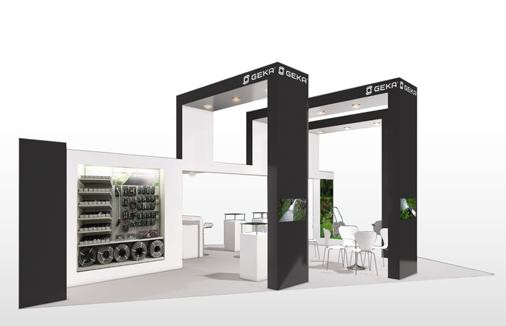 Funktional gestaltet, wiederverwendbar und an die jeweilige Messestandgröße anpassbar.