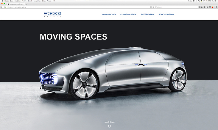 Unser Auftraggeber beauftragte uns mit der Konzeption inklusive grafischer Gestaltung und Userinterface einer Landingpage unter Einhaltung der Corporate Design Vorgaben für sein speziell auf die Automobilindustrie gerichtetes Angebot. Der Besucher soll das Thema „moving spaces“ nahezu fühlbar, einfach nachvollziehbar und interaktiv erleben. Es soll den Besucher fesseln und animieren, mehr darüber erfahren zu wollen und sich letztlich auf „moving spaces“ einlassen.