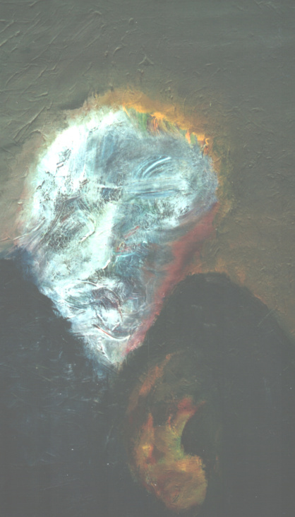 Jedes Bild ist singulär. Es steht für sich. Es gibt keine Sequenz mit anderen Bildern. Keine erklärende Sprechblase wie bei Comics. Weder Comics noch Francis Bacon dienen als Vorbilder. Die „Gesichter“ entstehen im Experiment. Mein Ziel ist es immer noch, ein so gutes Bild wie den „Herzgeizigen“ zu schaffen. Der „Herzgeizige“ ist ein Produkt des Zufalls. 1992 als absoluter Anfänger gemalt auf dem Untergrund eines alten Landschaftsbildes, das ich auf dem Flohmarkt für 3 DM erwarb.
