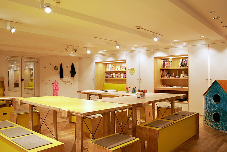 Ansprechendes Design für große und kleine Kinder – unsere Inspiration für die neue Inneneinrichtung des Jugendzimmers in der Villa Stuck. Die Möbel sind so konzipiert, das sie sich im‘handumdrehen’ in der Höhe verstellen lassen und somit flexibel und für unterschiedlich große Menschen einzusetzen sind.