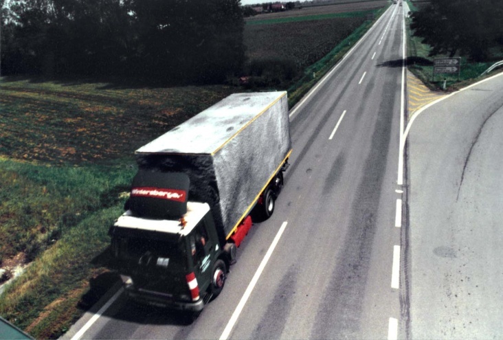 Ein Industriecontainer wird im öffentlichen Raum positioniert, dieser dient als „Trägerfläche“ für die digital verfremdete Körperlandschaft. In seinem Inneren, der Stirnseite, wird ein computeranimierter Flug über den abgewickelten Kopf projeziert. Der achiffierte Container steht als „Bodybox“ im Stadtraum. Die Körperoberfläche ist durch seine Verfremdung und in der Vergrösserung nicht eindeutig les- und erkennbar. Das Objekt soll einerseits anziehen,„Neugierde“ wecken, andererseits soll es abstoßen, auf „Distanz“ zum sozialen Gefüge gehen. Auffindungsort, Produktionsort, Transportmittel, Transportweg und Objektlagerung werden in dieser Photoserie zu einer Irreal-Real-Durchmischung verkettet. Der Weg dieser „pixelbeschleunigten IndustrieWABaussenraumskulptur“ (aus der Serie „pathfinder“) vom Auffindungs- und Produktionsort in Wien Aspang-Industriebahnhof, über die Südosttangente und Schnellstraße nach Krems, die kurze Zwischenlagerung in Krems auf einem LKW Standplatz, der Weitertransport auf der A1 nach Linz, die Linzer Stadtautobahn und schließlich die Rückführung und Lagerung des IndustrieWABs – wurde mit der Kamera festgehalten, und enthält als Photo- bzw. Videoarbeit eine eigene künstlerische Aussage. Die Durchdringung des öffentlichen Raumes und Positionierung im „Alltäglichen“ – Autobahnraststätte, LKW Standplatz – dieses mit Digitalplots überzogen selbst alltäglichen Industrieobjektes ergibt eine seltsame Durchmischung von virtuellem Raum und Realraum. Die eizelnen statischen Pixel des mit meiner verfremdeten Körperoberfläche beklebten Cotainers werden auf der Autobahn auf 100 km/h beschleunigt – das Objekt wird gleichsam in einem dynamischen Pixelflug aufgelöst. Markus Wintersberger 1998