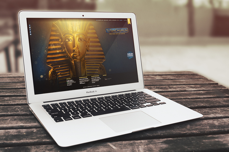 Bereits zum zweiten Mal tourt die berühmte Tutanchamun-Ausstellung nun durch Deutschland. Anlässlich der Eröffnung in München wurde der gesamte Außenauftritt überarbeitet und erneuert. Im Zentrum der Werbemaßnahmen steht dabei die neu programmierte Website, die mit sehr umfangreichen Informationen und Hintergrundwissen auf die spannende Reise ins Alte Ägypten aufmerksam macht. Konzeptioniert, programmiert und begleitet wird die Seite von der Agentur Neue Monarchie aus Hamburg. Dem Kunden Semmel Exhibitions war vor allem wichtig, die Faszination, die man live in der Ausstellung erlebt, möglichst gleichwertig auf die Online-Kanäle zu übertragen. Auf Wordpress-Basis entstand ein Onepager mit einer umfangreichen Archivfunktion im Hintergrund. Der mysthische Charakter der Ägyptologie wird durch einen funkelenden Paralax-Effekt auf der Startseite unterstrichen und verleiht dem Layout mehr Tiefe und Dreidimensionalität.