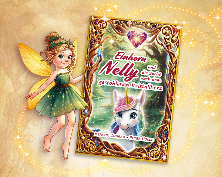 • Kinderbuch-Illustration | Cover | Layout | Werbung: „Einhorn Nelly und die Suche nach dem gestohlenen Kristallherz“