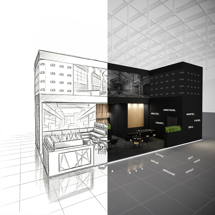 Aktuelle Messe-Design: Durchdachte Raumaufteilung und eine Gestaltung, die den Dialog mit dem Besucher fördert.