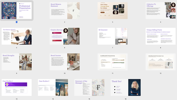 Präsentation der neuen Website Collective F Claudia Gossmann RSS Perfil Claudia GossmannEntradasRedContacto atrás adelante 0 Collective F ist mein Abschlussprojekt im KI-Weiterbildungskurs. Es handelt sich um eine Plattform von Frauen für Frauen, damit diese mit ihren Talenten mehr Sichtbarkeit und Einkommen generieren können. Präsentation – Parcours Meister Compartir Xing Facebook Twitter LinkedIn Pinterest Whatsapp Reenviar por correo electrónico